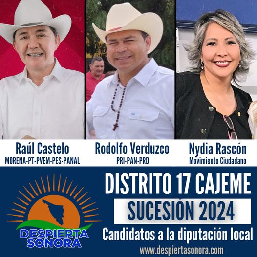 “El Pollo”, quien lidera las encuestas, ha sido dos veces consecutivas diputado por Morena y va por su tercera al hilo; Rodolfo Verduzco del mero Pueblo Yaqui, es un priista de trayectoria; Nydia hasta hace poco estaba en las filas del PAN, pero el partido naranja le dio la oportunidad de encabezar esta candidatura