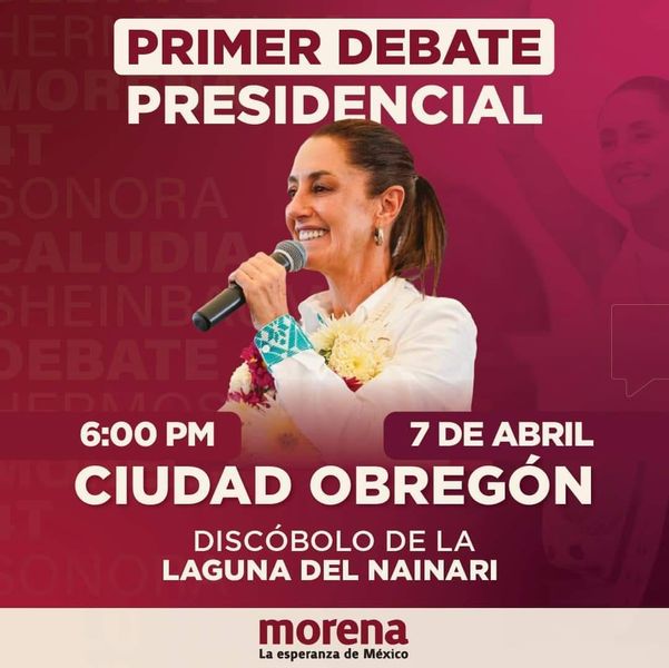“Invitamos a los ciudadanos a que se informen y a que nos acompañen este domingo 7 de abril a las 6 d la tarde en la Laguna, para apoyar a nuestra próxima presidenta de la República y demostrar que Cajeme está con Claudia”, resaltó.