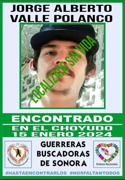 Mediante una prueba de ADN se confirmó que los restos encontrados en una de las fosas de El Choyudo, de la costa de Hermosillo, corresponden al de Jorge Alberto Valle Polanco, jpven desaparecido el pasado 28 de noviembre de 2023, en Guaymas, Sonora.
