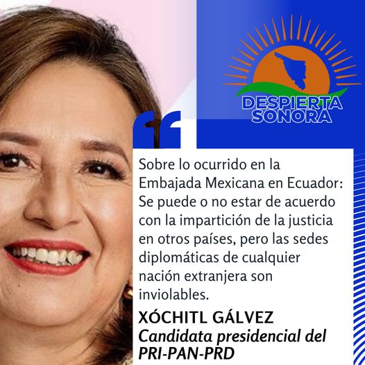 XÓCHITL GÁLVEZ SEÑALA QUE LAS SEDES DIPLOMÁTICAS SON INVIOLABLES, ESTO TRAS IRRUPCIÓN DEL GOBIERNO DE ECUADOR A LA EMBAJADA DE MÉXICO