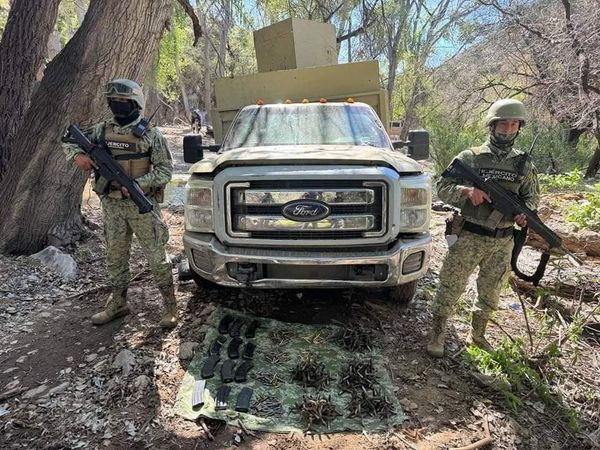 Las personas aseguradas abordaban tres vehículos blindados y traían consigo seis armas largas de uso exclusivo de las fuerzas armadas, una ametralladora, 77 cargadores, chalecos tácticos y cascos.