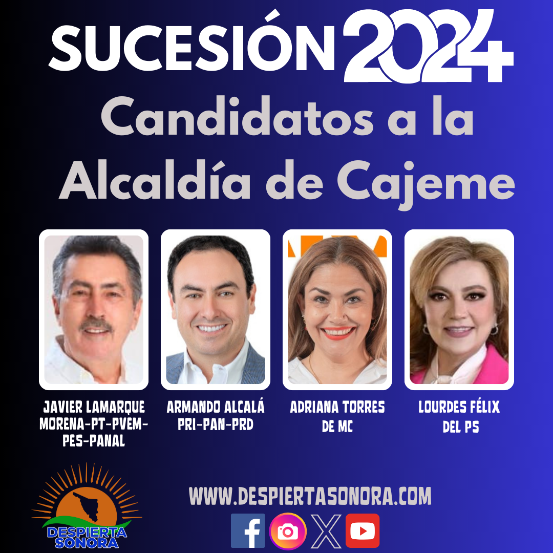 En el caso de Cajeme serán tres los candidatos que le disputarán la Alcaldía a Javier Lamarque Cano @Cjavierlamarque, quien va por la reelección, con esto sería su tercer periodo como presidente municipal: 1997-2000, 2021-2024 y 2024-2027.