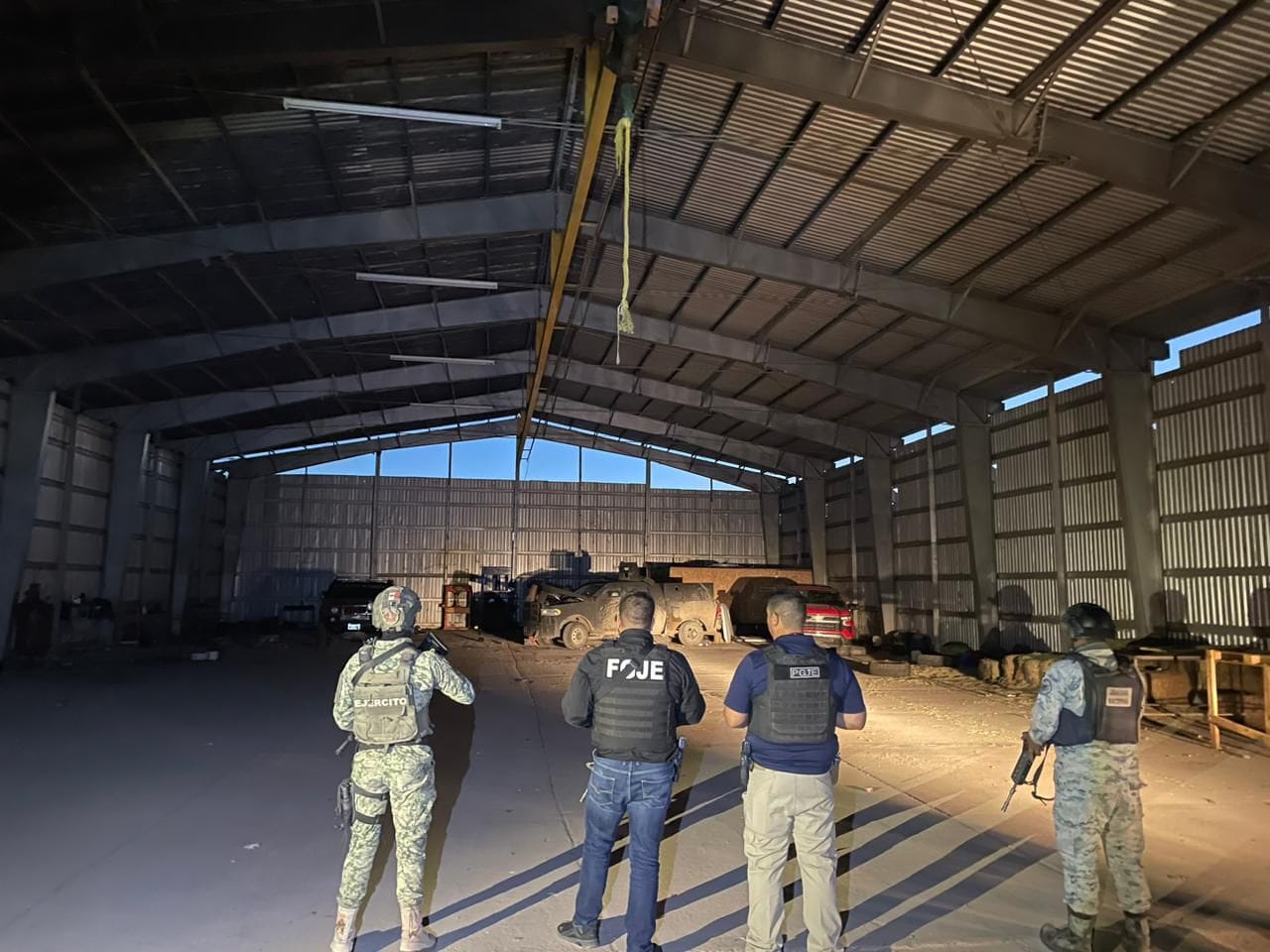 SONOYTA. – Elementos de la Agencia Ministerial de Investigación Criminal (AMIC), en coordinación con personal de la Secretaría de la Defensa Nacional (SEDENA), localizaron y aseguraron en el municipio Plutarco Elías Calles (Sonoyta), un almacén habilitado como taller para la reparación y armado de vehículos con blindaje artesanal, conocidos también como “monstruo”, donde se encontraban tres vehículos, dos armas largas y narcótico.