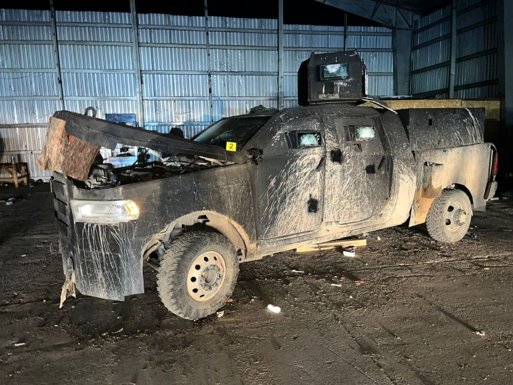 Además se aseguraron placas de acero balístico, plantas soldadoras, máquinas ensambladoras, punteadoras industriales, así como dos armas largas, cartuchos útiles, narcótico y una cubeta que contenía 78 artefactos “ponchallantas”, entre otros indicios.