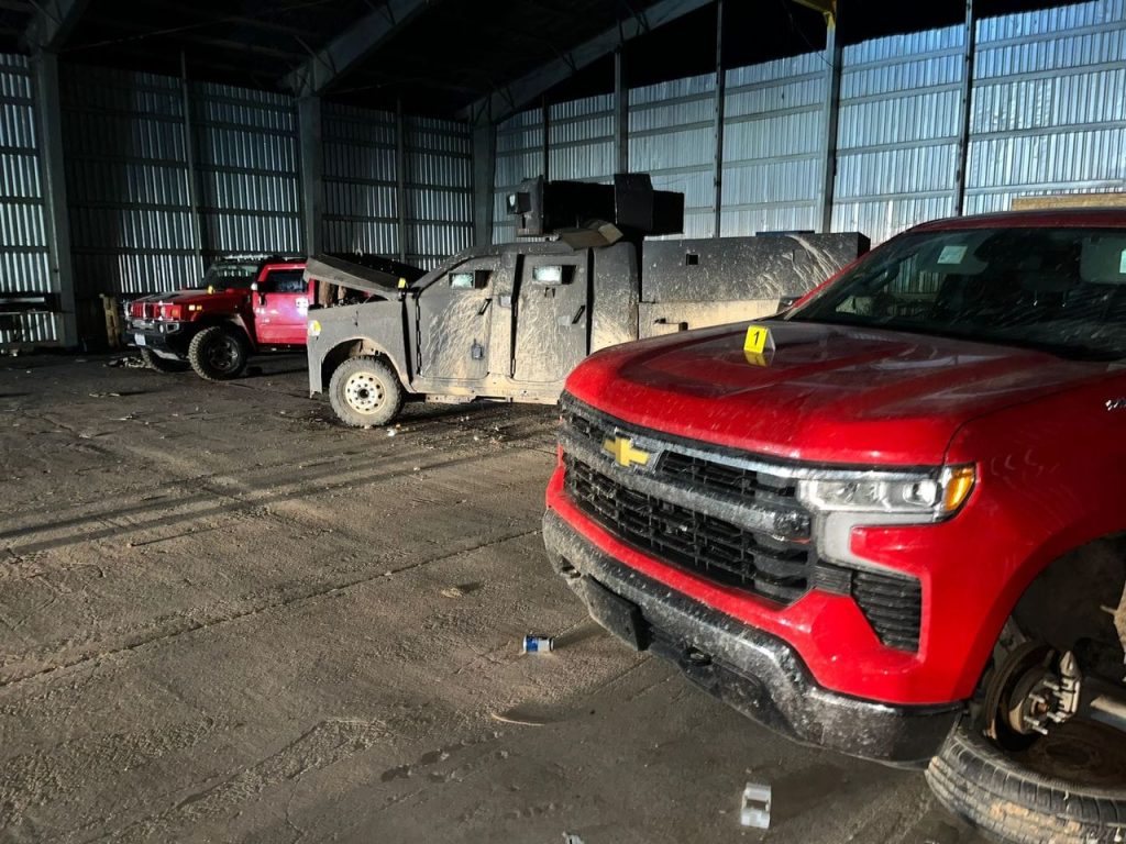 En el interior de la bodega se encontró un vehículo de la marca RAM blindado tipo “monstruo”, con torreta para montar una ametralladora, una camioneta tipo pick up de la marca Hummer H2, así como un vehículo Chevrolet Silverado.