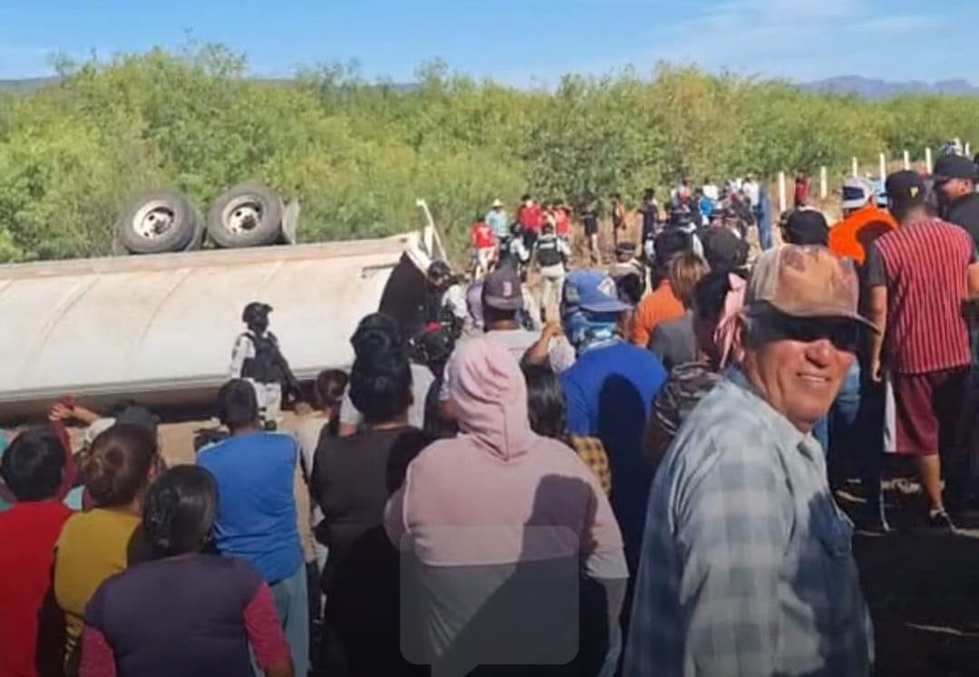 ACCIDENTE EN TRAMO GUAYMAS-OBREGÓN DEJA TRES LESIONADOS; SE DESATA LA RAPIÑA POR TRÁILER QUE TRANSPORTABA DULCES