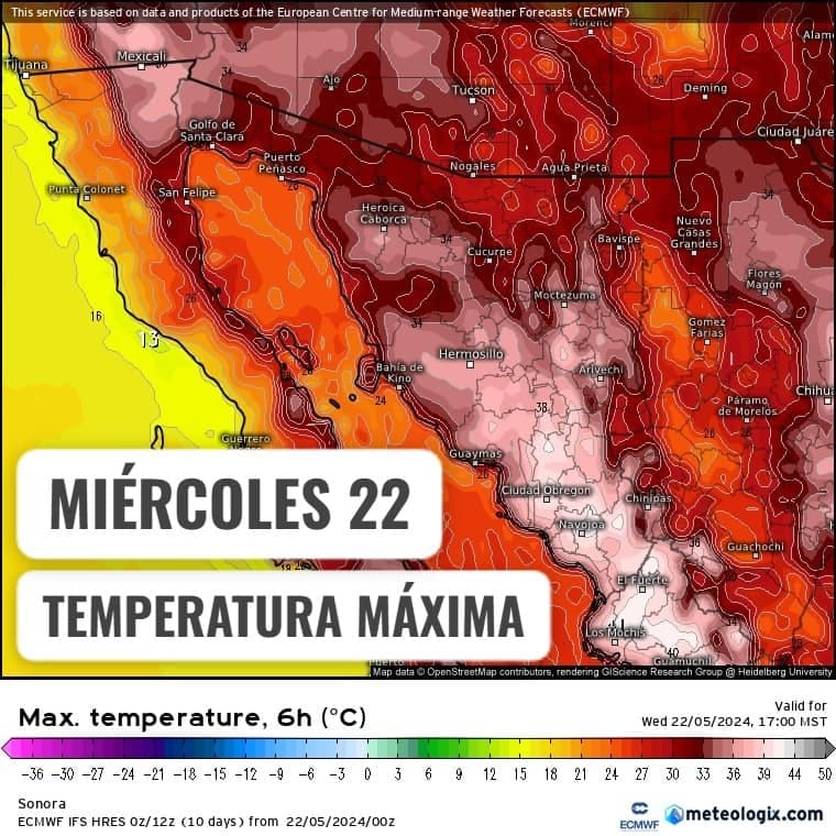 El día de hoy continuará sobre gran parte del país un sistema anticiclónico en niveles medios de la atmósfera, dando origen a la tercera onda de calor de la temporada 2024, por lo cual, se prevé ambiente caluroso a muy caluroso en #Sonora pudiendo llegar a registrarse temperaturas superiores a 45°C en municipios de la región centro y sur del estado. Así mismo, se espera que este evento perdure durante los próximos días.