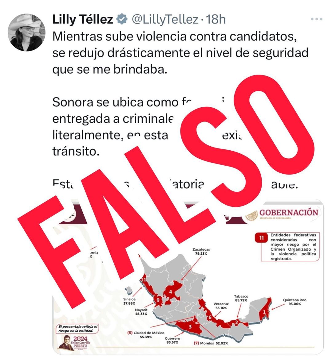 – Lo de la candidata Lilly Téllez ya se torna en lo ridículo, hacer una imagen falsa de Gobernación para señalar índices imaginarios es absurdo