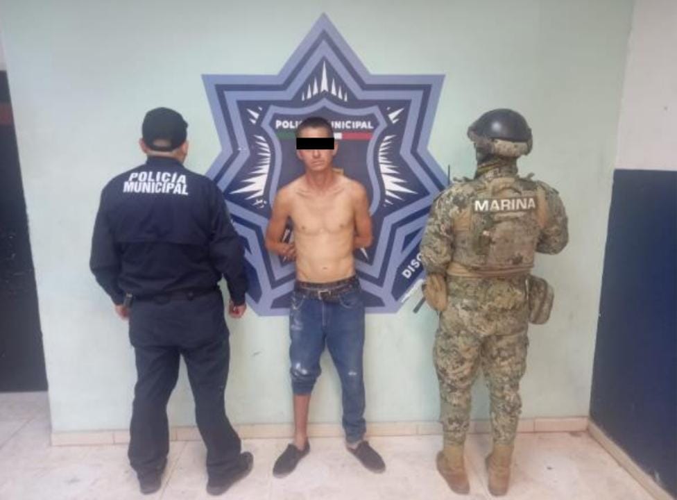 Una vez recaba la información y puesto a salvo a la víctima, los elementos detuvieron a Adrián Antonio “N.”, de 28 años de edad, quien adoptó una actitud agresiva y de alto riesgo agrediendo a un agente, por lo anterior, se utilizaron técnicas y tácticas policiales para su sometimiento.