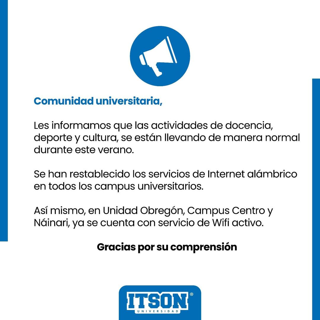 Así mismo, en Unidad Obregón, Campus Centro y Náinari, ya se cuenta con servicio de Wifi activo.