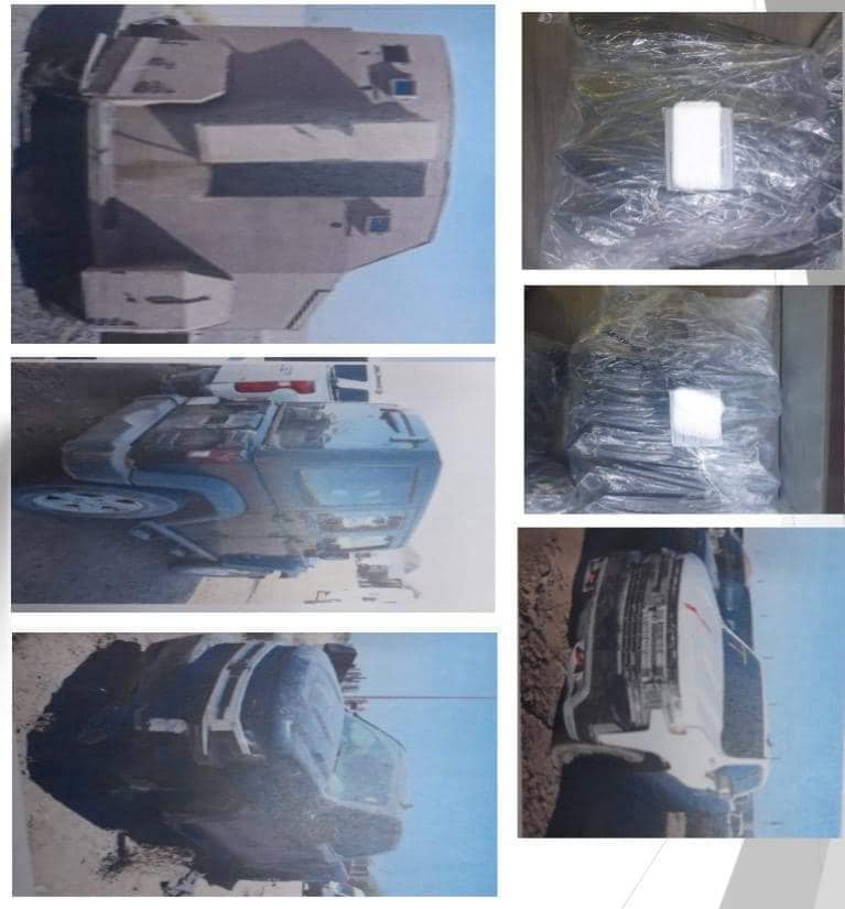 Elementos de la Secretaría de la Defensa Nacional y de la Guardia Nacional, en coordinación, llevaron a cabo el aseguramiento de 36 cargadores para arma de fuego calibre 7.62 x 39 mm; 500 cartuchos para arma de fuegos calibre 7.62 x 39 mm; un vehículo marca Chevrolet, modelo 2020, sin placas de circulación; un vehículo marca Chevrolet, modelo 2020, sin placas de circulación; un vehículo marca Jeep, tipo todo terreno, modelo 2014, sin placas de circulación y un vehículo color café, con placas de acero soldadas alrededor de toda la carrocería con pequeñas ventas con vidrios gruesos, sin número de serie visible.
