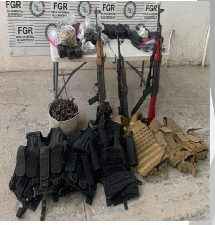 El procedimiento legal se llevó a cabo en una casa, que también fue asegurada, en la calle W, entre calles 9 y 10, en la colonia Industrial, en la que fueron confiscadas tres armas de fuego tipo fusil, 40 cargadores para arma de fuego y mil 196 cartuchos calibre 7.62 x 39 mm.