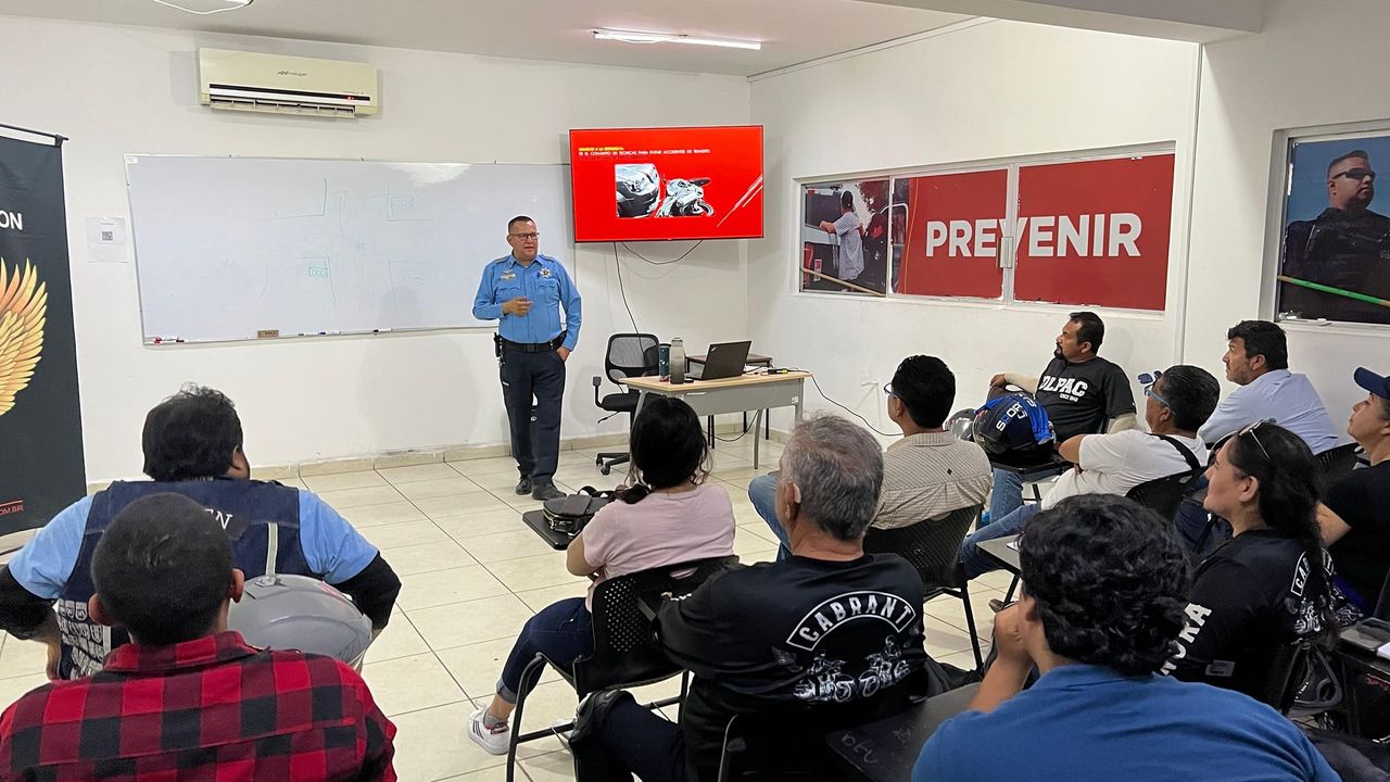Durante la capacitación, se abordaron temas clave como derechos y obligaciones de los motociclistas, explicando sobre las leyes de tránsito, además de la importancia de la seguridad vial, estrategias y prácticas para la conducción segura, incluyendo el uso adecuado del equipo de protección personal, técnicas de manejo defensivo y la importancia del mantenimiento adecuado de las motocicletas.