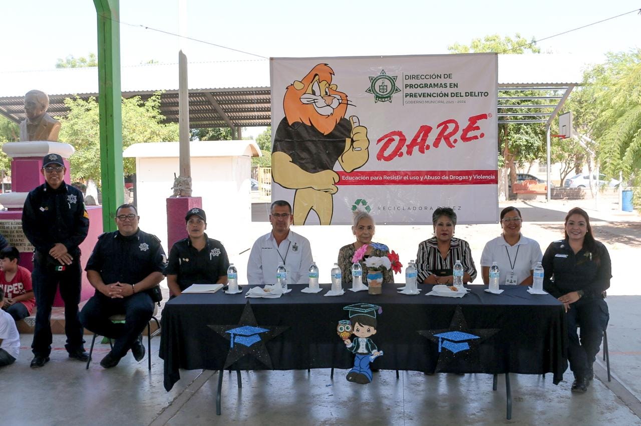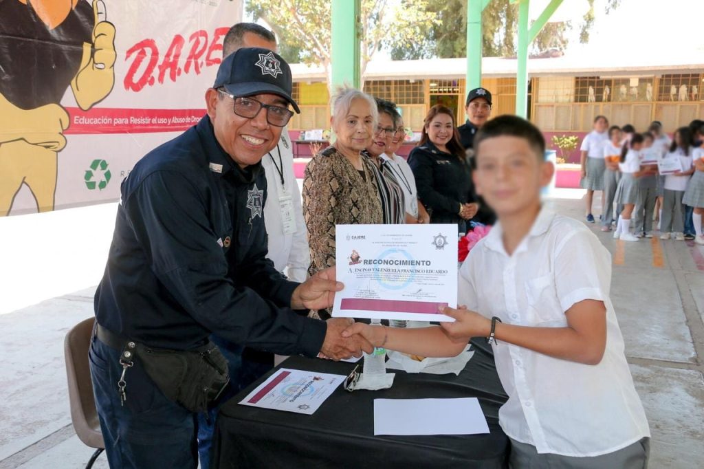 Dominga Bravo Peña, Directora de Programas Preventivos de la corporación policial, informó que las y los estudiantes llevaron durante 10 semanas pláticas preventivas por oficiales DARE, aprendiendo las herramientas necesarias para su autocuidado y la toma de decisiones responsables.
