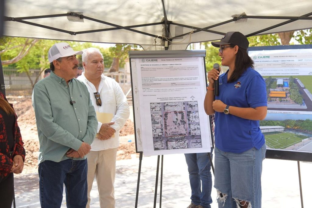 El proyecto contempla la contrucción de un área deportiva, explanada cultural y de un centro comunitario, además de contar con cancha de fútbol, básquetbol, voleibol, área de mesas, área de nadadores y jardines, y el monumento al maestro.
