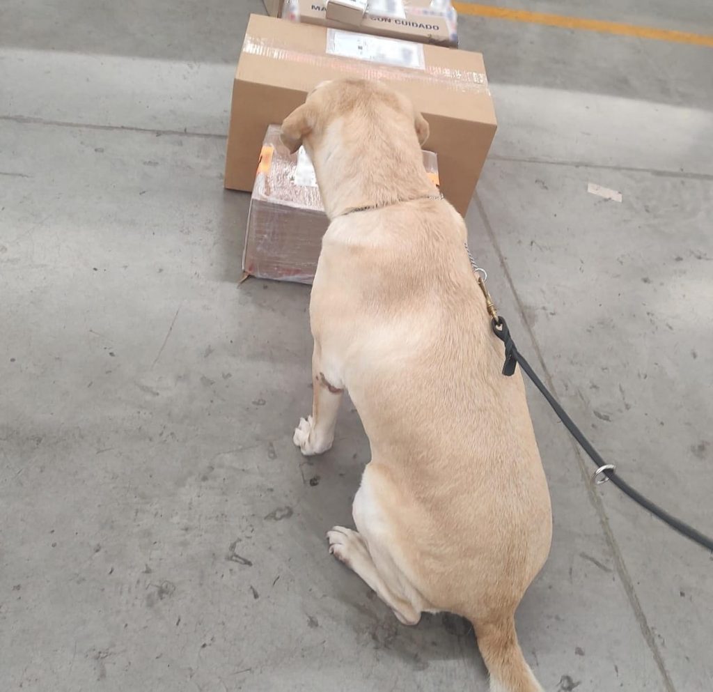 Previa autorización, el personal de esta institución eligió aleatoriamente diversos paquetes, los cuales fueron olfateados por uno de los ejemplares, el cual se interesó por un envío en particular, ante el cual mostró un cambio de conducta por la posible presencia de algún objeto o sustancia ilícita.