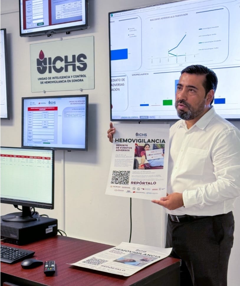 Hermosillo.- La Secretaría de Salud (SSA) de Sonora, a través del Centro Estatal de la Transfusión Sanguínea (CETS), desarrolló el programa de la Unidad de Inteligencia y Control de Hemovigilancia en Sonora (UICHS), herramienta de alto impacto en los servicios de sangre, la cual está integrada por un equipo multidisciplinario de hematología, epidemiología, química, enfermería y estadística.