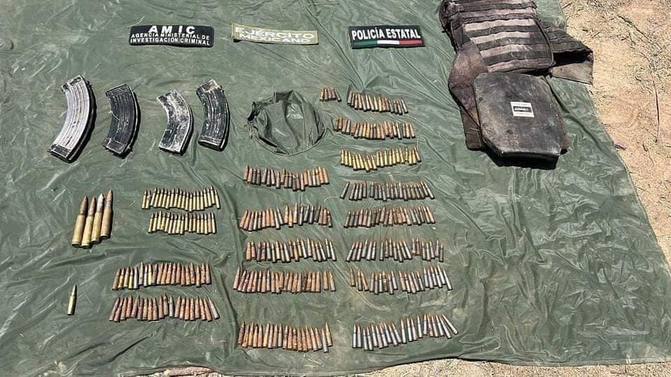 En el interior de la unidad fueron asegurados 300 cartuchos calibre 7.62 x 39, un cartucho calibre .308, cuatro cartuchos calibre .50, cuatro cargadores para fusil AK-47, y un chaleco antibalas.