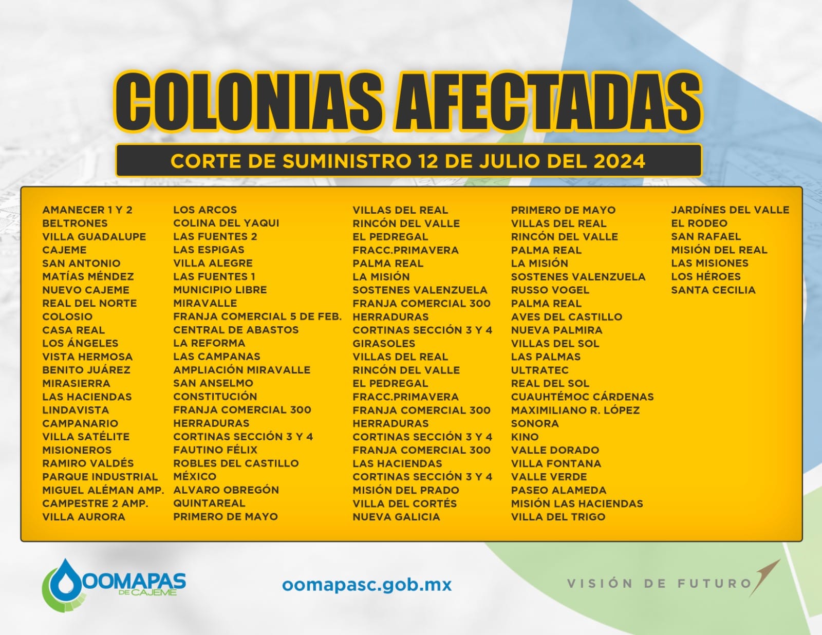 Se suspenderá el servicio de agua en todo el sector y oriente de Ciudad Obregón, por trabajos de interconexión en nueva línea principal de 30 pulgadas