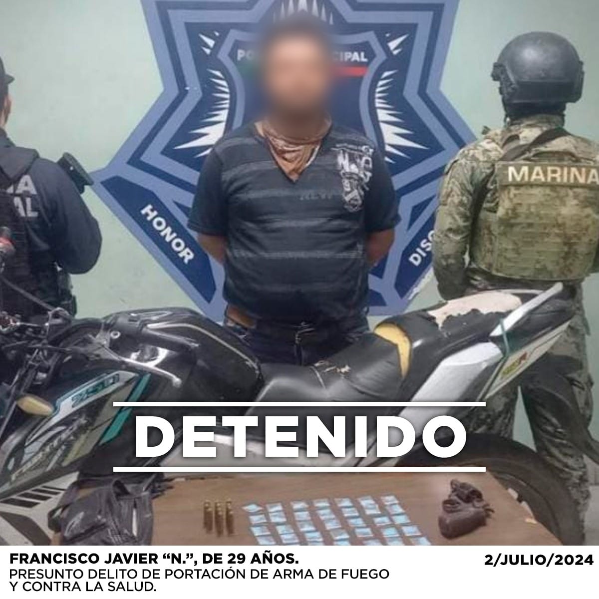 Durante la semana de trabajo, la Policía Municipal se encargó de asegurar 3 armas de fuego cortas, dos armas blancas, dos cargadores y 28 cartuchos, además de 69 dosis de marihuana.