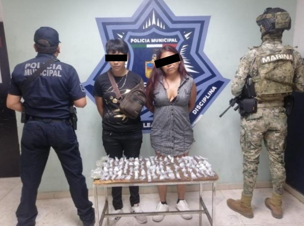 En un operativo desplegado al nororiente en la colonia Las Haciendas, agentes de la Secretaría de Seguridad Pública Municipal y Marina, lograron sacar de las calles más de 100 envoltorios de drogas, capturando a dos personas.