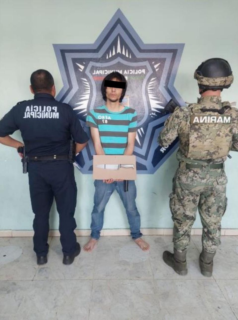El primer operativo fue a las 15:20 horas del martes, al poniente de la ciudad, por la calle Tiberina y esquina con Treviso de la colonia Urbi Villa del Real, donde se detuvo a José Ángel Javier “N.”, de 18 años, quien se encontraba agresivo y escandalizando en la vía pública portando un cuchillo, siendo vinculado por el presunto delito de portación de arma prohibida.