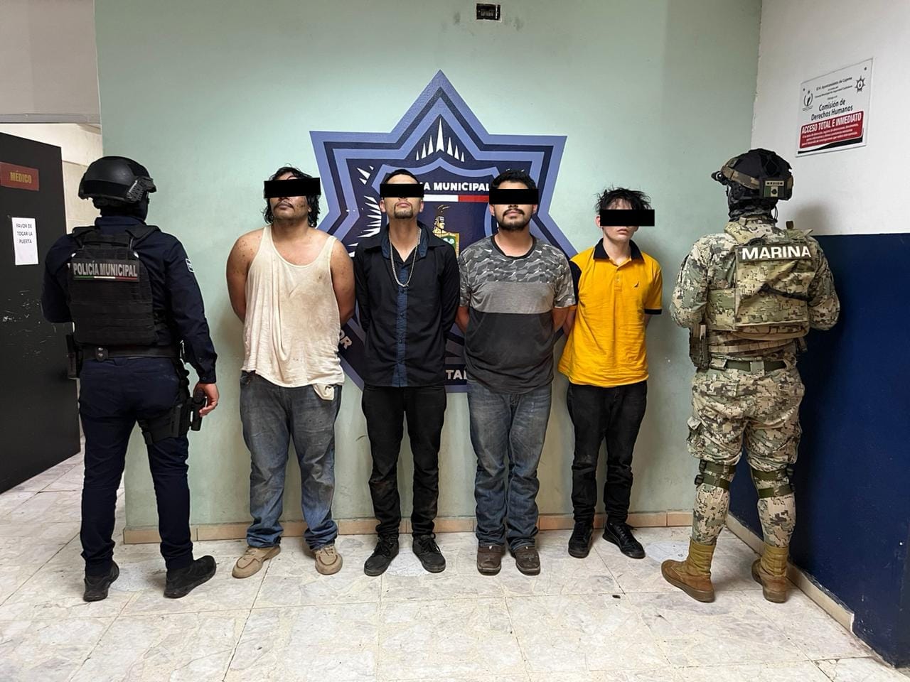 Cuatro hombres y una mujer fueron capturados durante un operativo conjunto realizado por elementos de la Secretaría de Seguridad Pública Municipal y Marina, en atención a un llamado de emergencia canalizado por el C5i, donde reportaban un presunto caso de privación ilegal de la libertad y personas con armas de alto poder.