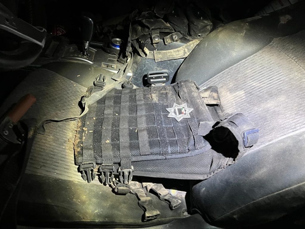 Del interior del vehículo Toyota 4 Runner se localizaron y aseguraron dos fusiles AR-15, un fusil AK-47, un lanzagranadas, tres granadas calibre .40, ocho cargadores para armas de fuego AK-47 y AR-15, equipo táctico diverso, y la unidad automotriz modelo 2018, la cual cuenta con reporte de robo en los Estados Unidos de América.