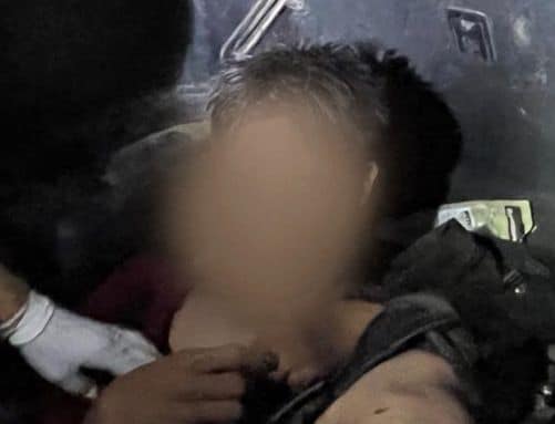 De la unidad motriz, cuatro sujetos huyeron para perderse entre el monte, pero el joven de 17 años, quien cuenta con reporte de persona desaparecida desde el 16 de julio de 2024, quedó lesionado en el interior del vehículo, fue asegurado y se le brindó atención médica por una herida en tórax y pelvis.