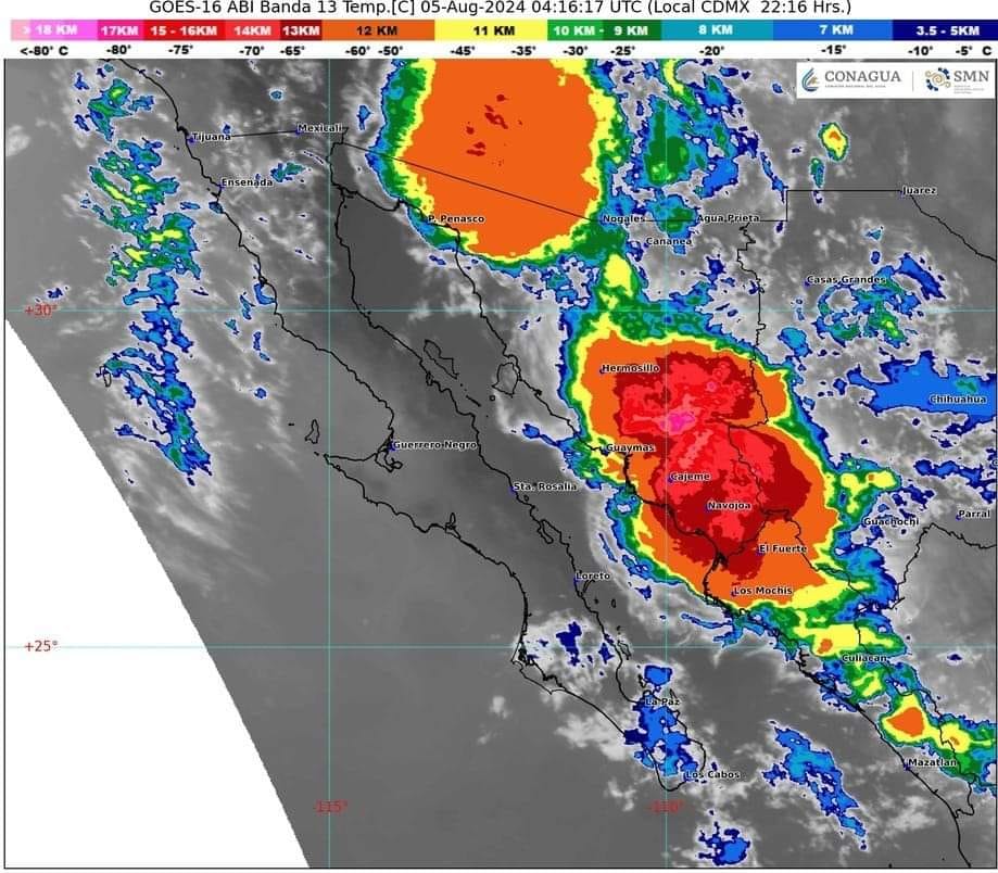 Se prevé que para las próximas 5 horas pudieran presentarse precipitaciones moderadas a fuertes para municipios de la región centro y sur, así mismo, continua la posibilidad de presentar rachas de viento y precipitaciones para la capital del estado para las próximas horas.