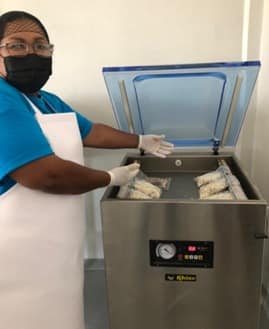 Este apoyo le ayuda a desarrollar su proyecto de descarne de jaiba, la cual están empacando al vacío, ya que le sacan tres partes que son tenazas cocteleras, carne de bracito y carne de jaiba en general.