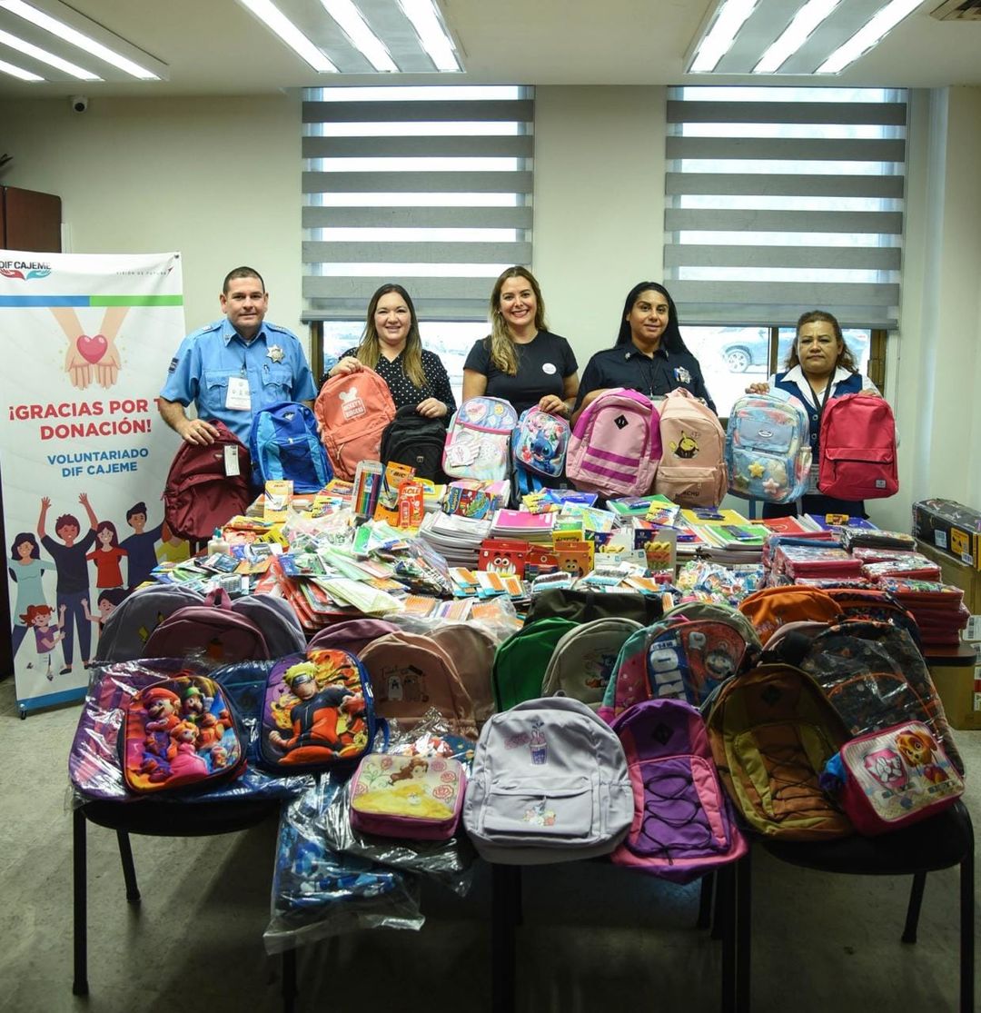 En un acto de generosa solidaridad, las y los trabajadores del área operativa y administrativa de la Secretaría de Seguridad Pública Municipal de forma voluntaria se sumaron a la campaña “Regreso a Clases”, organizada por DIF Cajeme.