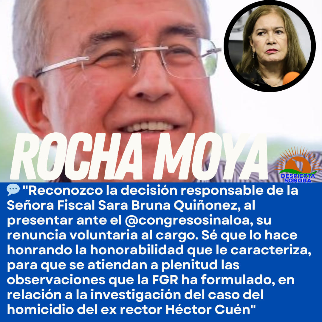 REACCIONA EL GOBERNADOR DE SINALOA, RUBÉN ROCHA MOYA, A LA RENUNCIA DE SU FISCAL DEL ESTADO, SARA BRUNA QUIÑONEZ