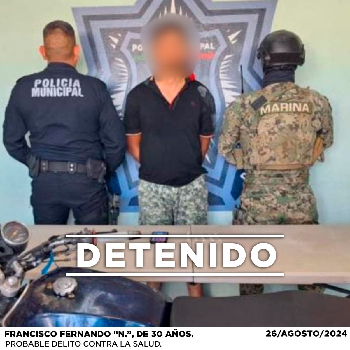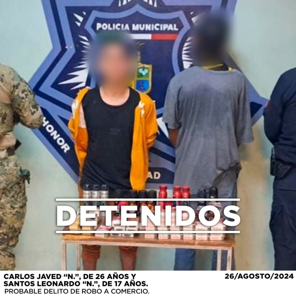 Los detenidos fueron identificados como Francisco Fernando “N.”, de 30 años, por el probable delito contra la salud; Salvador Adrián “N.”, de 31 años, probable delito de portación de arma prohibida; Jesús Adrián “N.”, de 18 años, probable delito de robo a comercio; Carlos Javed “N.”, de 26 años y Santos Leonardo “N.”, de 17 años, probable delito de robo a comercio; Jesús Ramón “N.”, de 39 años, probable delito de robo a comercio y Erik Valentín “N.”, de 49 años, probable delito contra la salud.