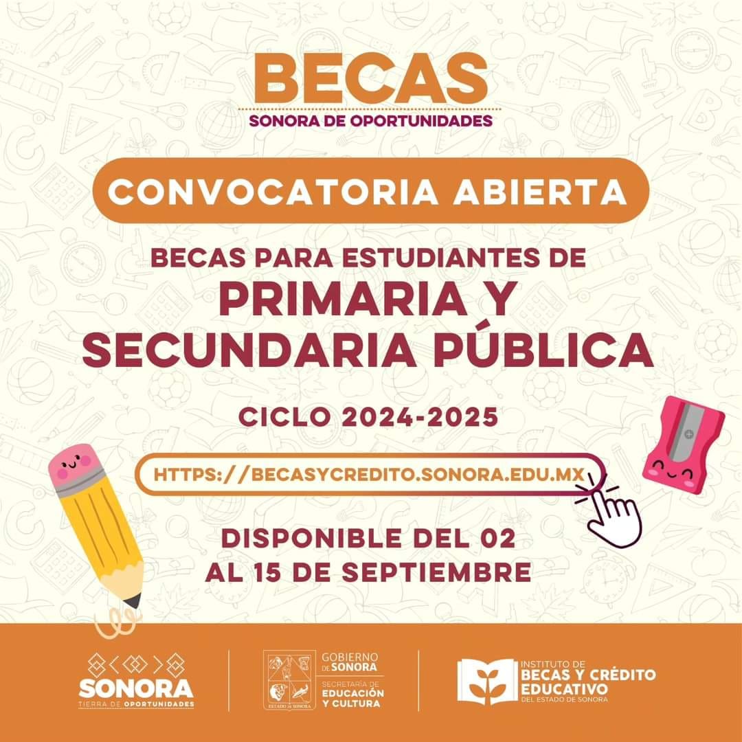 Ya está disponible la Convocatoria del programa Becas Sonora de Oportunidades para estudiantes de Primaria y Secundaria Pública, ciclo escolar 2024 – 2025.