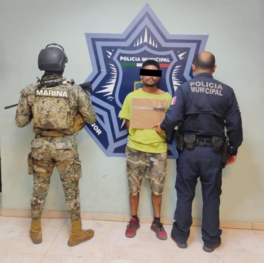 En recorridos de vigilancia para la prevención de los delitos, agentes de la Policía Municipal en coordinación con Marina, detectaron en un operativo conjunto a un sujeto, quien portaba en la vía pública un arma punzocortante.