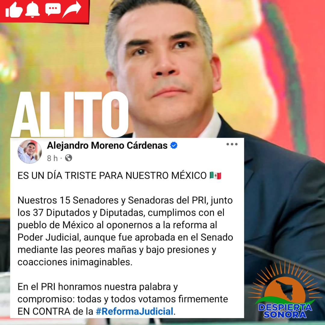 El dirigente nacional del PRI, Alejandro Moreno, sostuvo que los senadores de su partido se mantuvieron firmes y votaron en contra de la reforma al Poder Judicial, lo que prácticamente se vio minimizado ante una mayoría aplanadora de Morena y los partidos aliados de PT y PVEM.