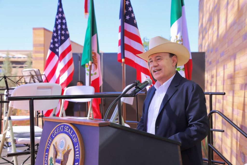 Durante la ceremonia de develación de la placa conmemorativa del nuevo consulado en Nogales, en la que encabezaron también, Tracy Thomas, directora general de Gestión de Construcción y Seguridad de la Oficina de Operaciones de Edificios en el Extranjero del Gobierno de Estados Unidos, y de la cónsul general de Estados Unidos en Nogales, Michelle Ward, el titular del Ejecutivo estatal refrendó la relación bilateral que existe entre Sonora y Arizona, unidos por una frontera que, más que dividir países, ha generado unión permanente para la relación económica, cultural, social y familiar entre ambas naciones.