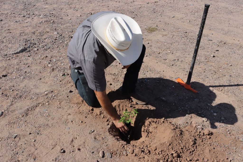 Para iniciar, dijo, que por medio de una serie de gestiones y de una suma de voluntades, de la Delegada de CONAFOR, Leticia Carrazco Valenzuela y del Delegado de SADER, Plutarco E. Sánchez Patiño, se obtuvieron los primeros doscientos árboles de especies endémicas de la región, como Tepehuaje, Palo Verde, Mezquite, Palo Fierro y Tabachín, entre otras, ya que no requieren el uso de tanta agua y son resistentes al clima sonorense.