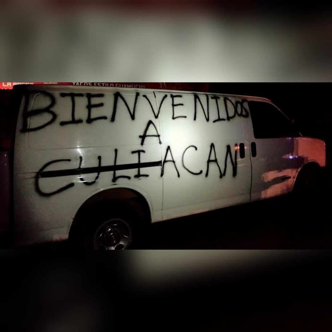 Una camioneta de color blanco tipo panel con varios cuerpos y un mensaje escrito en los costados apareció la anoche sobre la carretera México 15, a la altura de una taquería, entre el panteón Jardines de Humaya y un motel en la salida sur de la ciudad de Culiacán, Sinaloa.