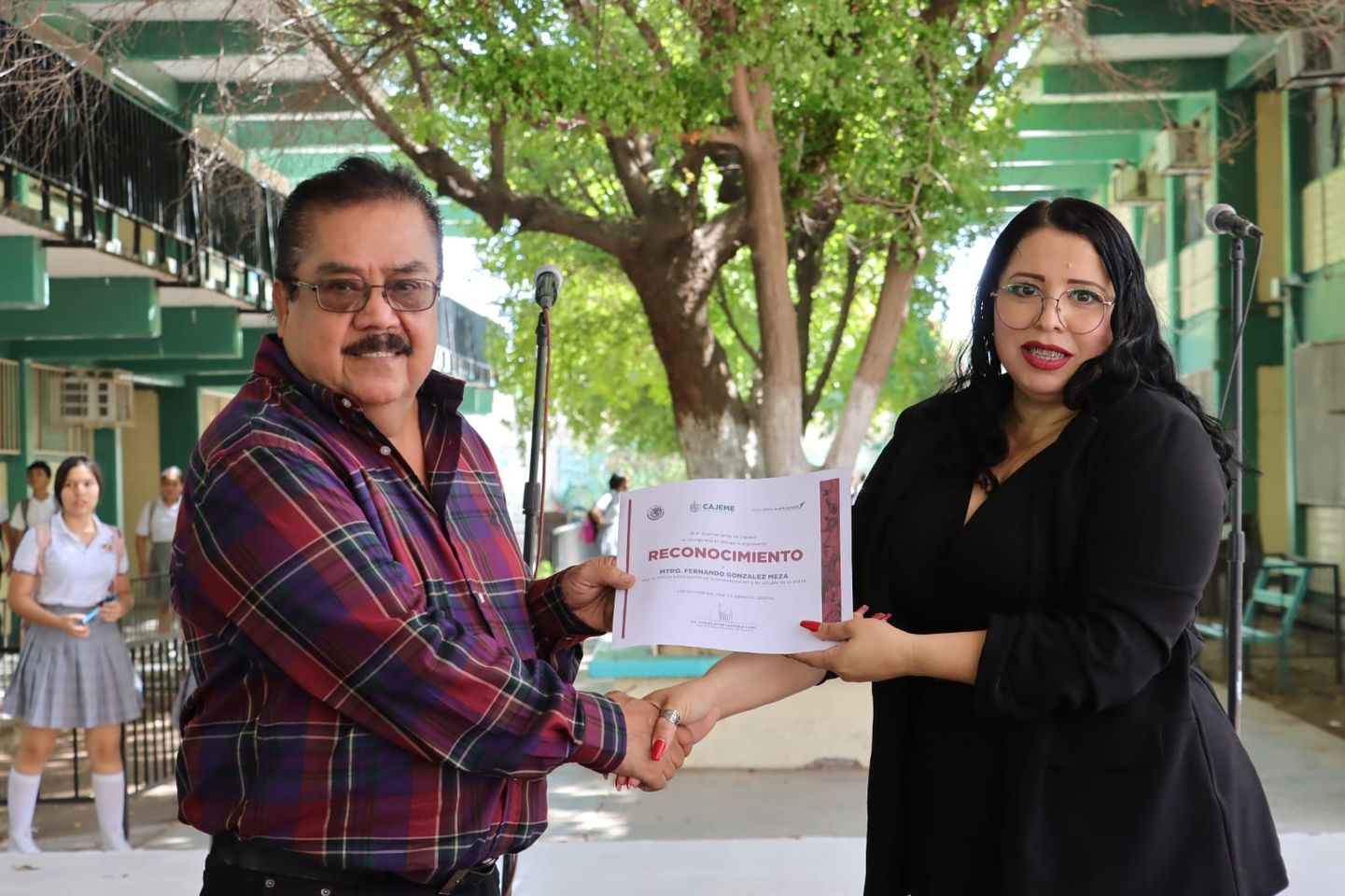 Previo a la entrega de reconocimientos al orador oficial, así como a las y los estudiantes que participaron en el programa artístico y cultural, la Subdirectora de Valores Cívicos, Cristina Pérez Valenzuela agradeció la bienvenida y la anfitrionía de la Directora de este plantel Educativo, Marisela González Meza y añadió una breve reseña sobre la tragedia estudiantil, en la que destacó que el autoritarismo a ultranza y la forma de aniquilar las voces de quienes exigían justicia, es un hecho inolvidable en la historia de México.