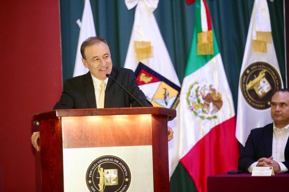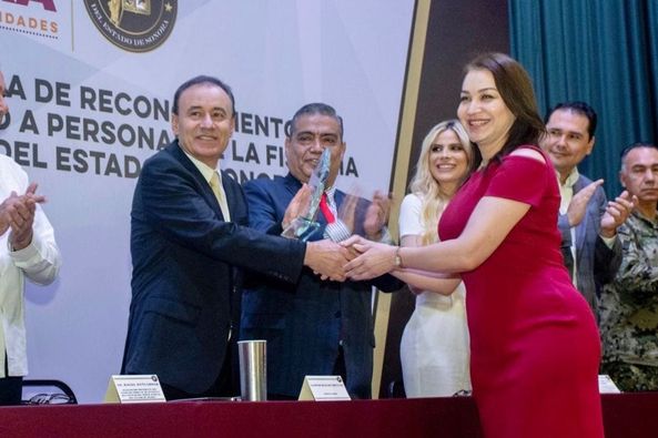 El jefe del Ejecutivo estatal, acompañado del fiscal de Justicia de Sonora Gustavo Rómulo Salas Chávez, durante la ceremonia de graduación de 113 elementos de distintas corporaciones de seguridad, reconoció la labor del personal de la Fiscalía y se comprometió a gestionar para que en el presupuesto del próximo año se destine una partida importante para mejorar los ingresos de los integrantes de la institución.