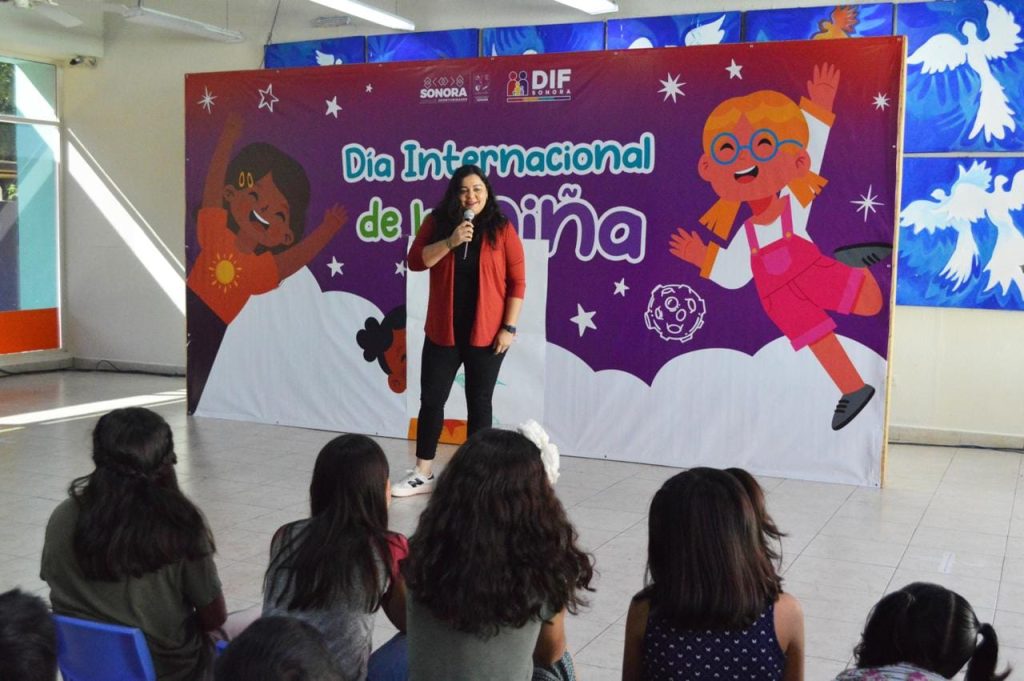 Hermosillo.- Con bailables, declamaciones y exposiciones artísticas, el Gobierno de Sonora, a través del Sistema para el Desarrollo Integral de la Familia (DIF Sonora), celebró el Día Internacional de la Niña en el centro de asistencia social Unacari.