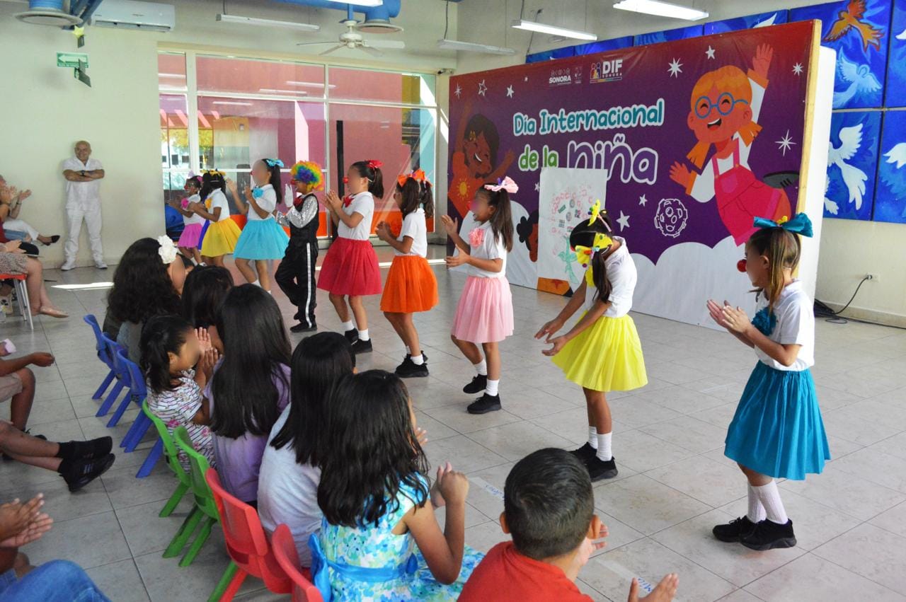 Hermosillo.- Con bailables, declamaciones y exposiciones artísticas, el Gobierno de Sonora, a través del Sistema para el Desarrollo Integral de la Familia (DIF Sonora), celebró el Día Internacional de la Niña en el centro de asistencia social Unacari.