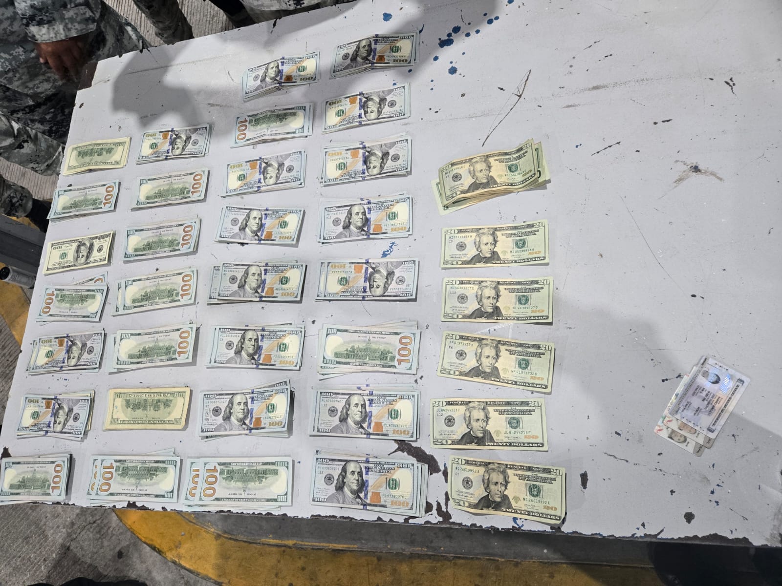 Tras la inspección, los integrantes localizaron en distintos lugares del interior de la camioneta, un total de 30 mil 300 dólares en efectivo, equivalentes a más de 640 mil pesos, dinero que carecía de la declaración aprobada por el Servicio de Administración Tributaria (SAT).