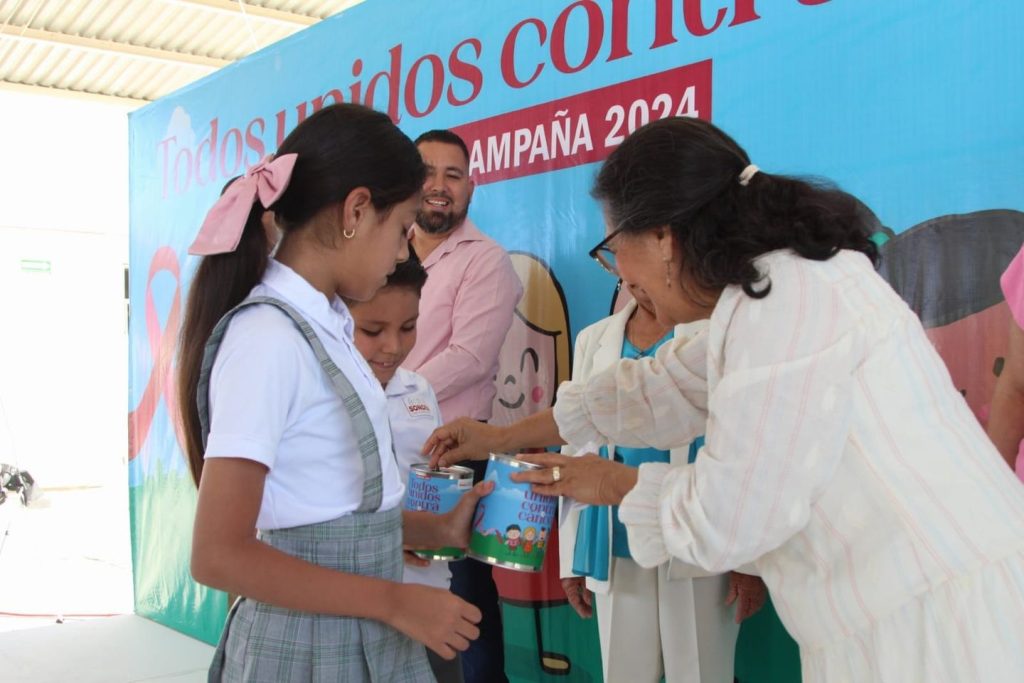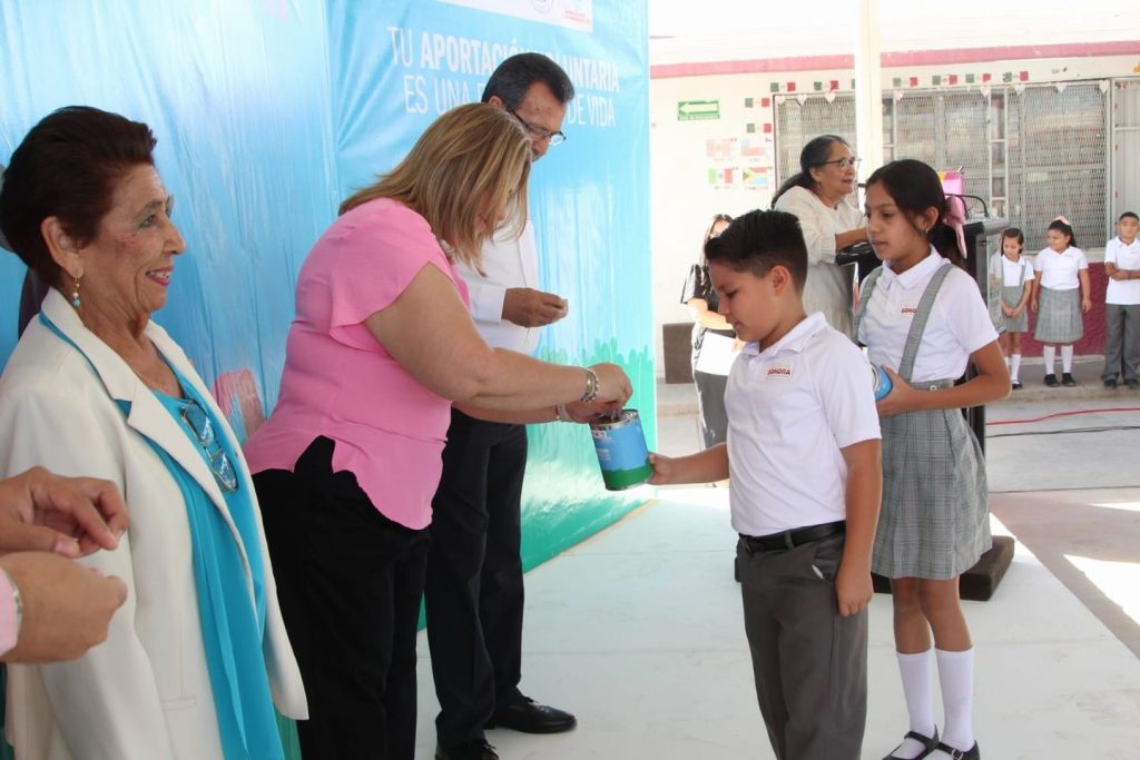 Ante alumnos, docentes y padres de familia de la primaria “Álvaro Rembau Figueroa”, la subsecretaría de Políticas Educativas y Participación Social, Guadalupe González Lizárraga, invitó a la comunidad escolar para unirse a las actividades de recolección de recursos para la fundación.