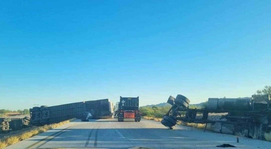 Debido a un accidente de un tractocamión, en el kilómetro 195 en el tramo carretero Guaymas-Hermosillo, hay tránsito lento en la zona.