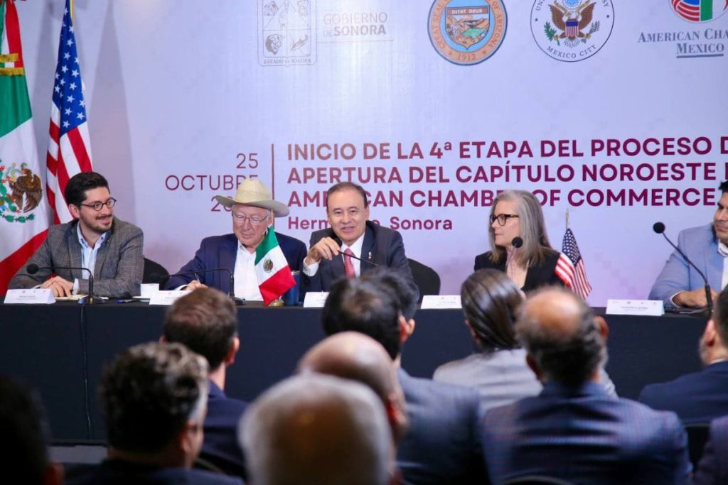 Hermosillo.- Con la última fase de la consolidación Capítulo Noroeste de American Chamber of Commerce of Mexico (AMCHAM), se fortalece el compromiso de promover prácticas internacionales de negocios y crear un ecosistema colaborativo entre los sectores público y privado en la región, con sede en Hermosillo, Sonora, hito alcanzado gracias al respaldo de empresas de ambos lados de la frontera, que marcan el inicio de una nueva etapa para Sonora y Estados Unidos, aseveró el gobernador Alfonso Durazo Montaño.