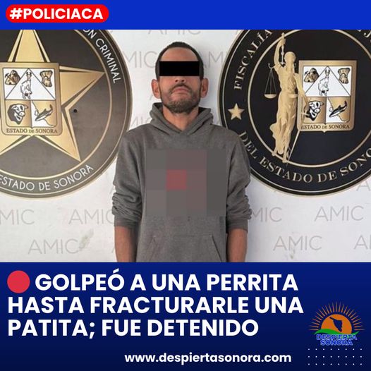 Hermosillo, Sonora, 13 de noviembre de 2024.- La Fiscalía General de Justicia del Estado de Sonora (FGJES), con elementos de la Agencia Ministerial de Investigación Criminal (AMIC), capturó a Francisco Guadalupe “N”, de 34 años, por el delito de maltrato animal en perjuicio de la canina “Campanita”, hechos por los cuales ya quedó vinculado a proceso.