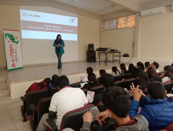 Como parte de las acciones implementadas bajo el programa “Jornada para el Bienestar y la Paz en Cajeme”, el Instituto Cajemense de la Mujer (ICM), llevó a cabo una plática sobre la prevención de la trata de personas en el Cecytes Obregón II, ubicado en la colonia Amaneceres, con el objetivo de sensibilizar a las y los jóvenes sobre dicho delito y proporcionarles las herramientas necesarias para identificar y prevenir situaciones de riesgo.
